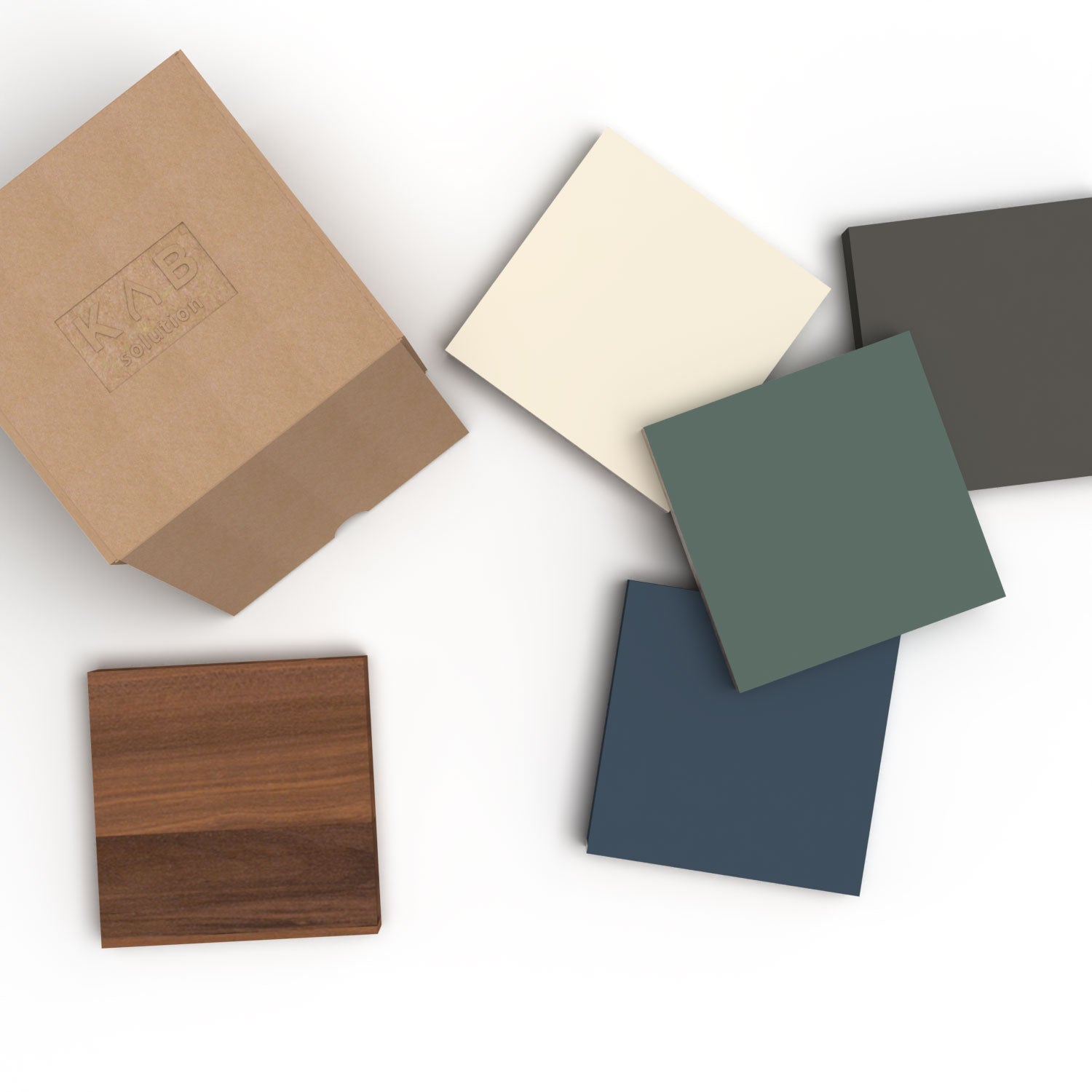 Chaque client peut choisir jusqu'à 6 échantillons, qui seront soigneusement emballés et livrés dans une boîte KAB. Vous pouvez ainsi voir et toucher les finitions, les textures et les couleurs et choisir le meilleur fini suivant votre espace.